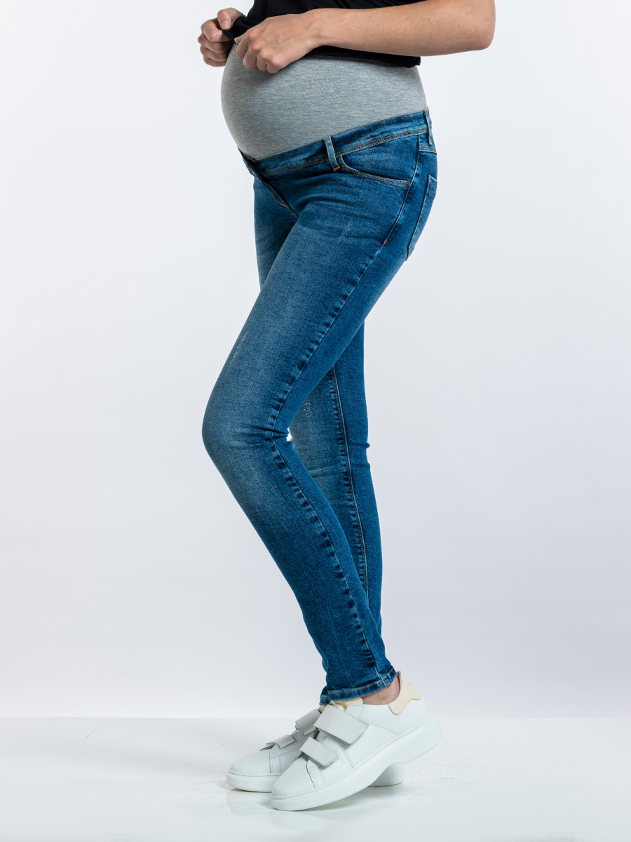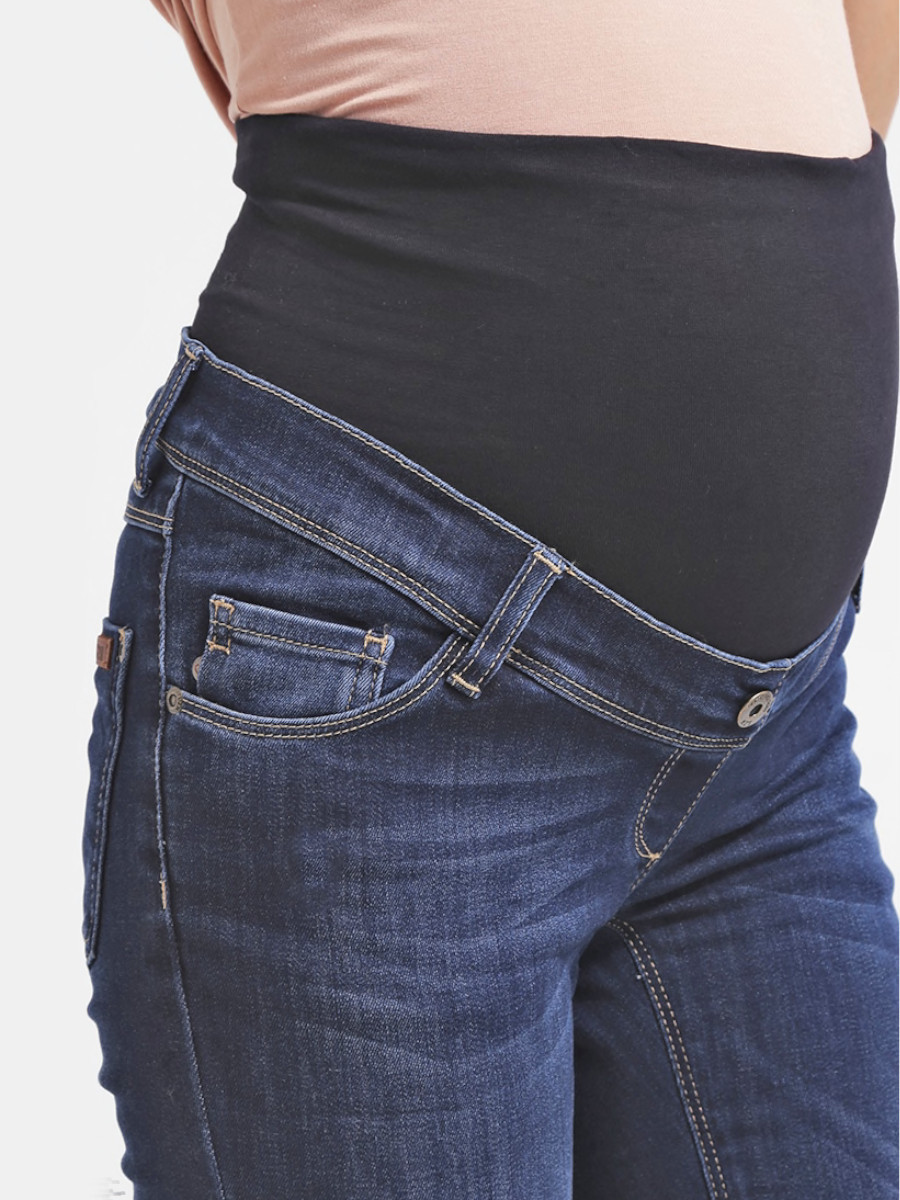Farkuissa on paljon stretchiä, joten ne mukautuvat eri mallisille vartaloille eivätkä kiristä tai purista. Farkkujen vyötäröllä on vatsan yli vedettävä napakka tuubiosa, vyölenkit sekä vyösauman sisäpuolelle piilotettu kuminauha, jolla voi säätää vyötärön istuvuutta pienemmäksi ja suuremmaksi.