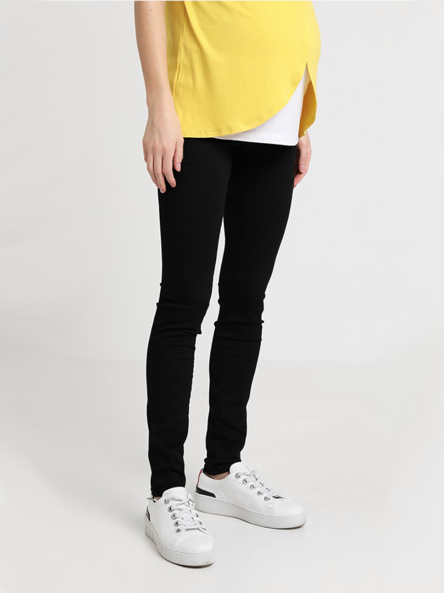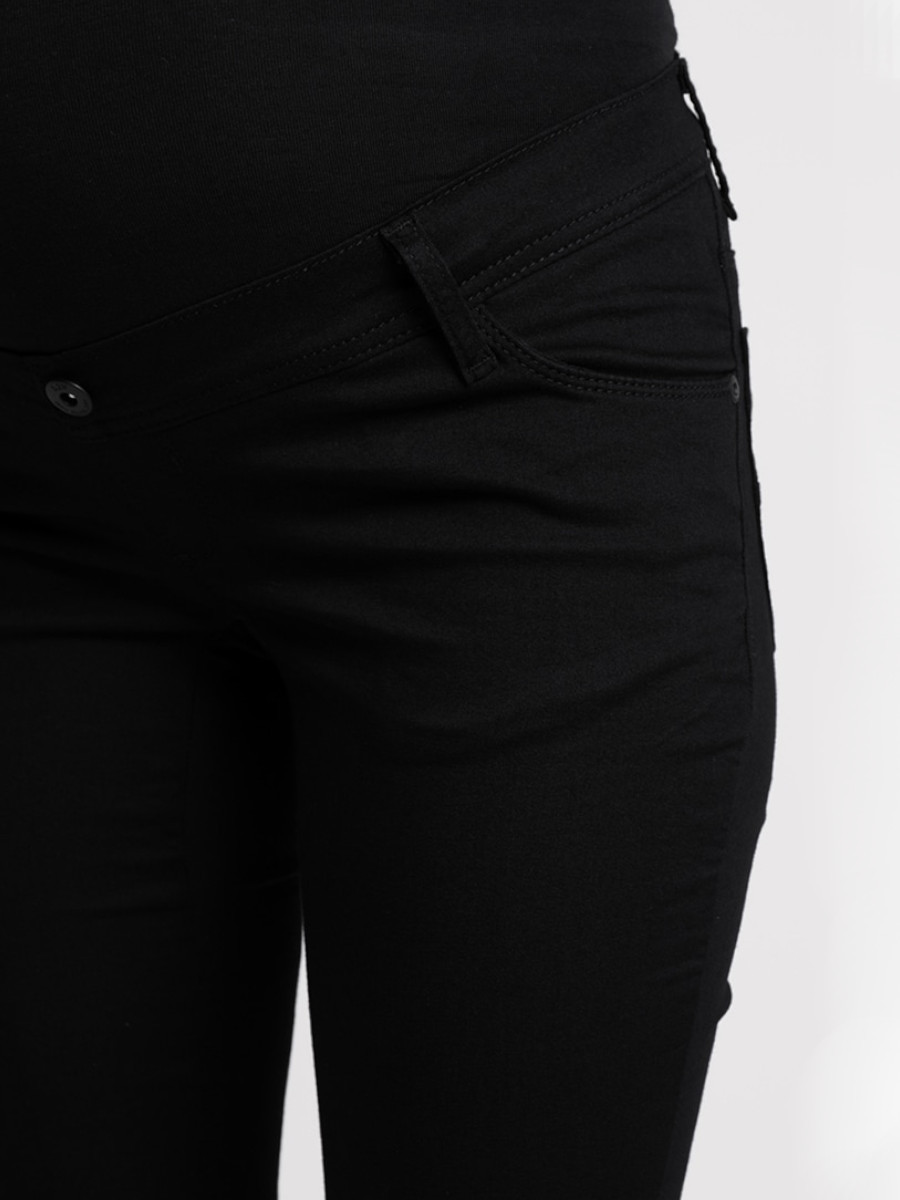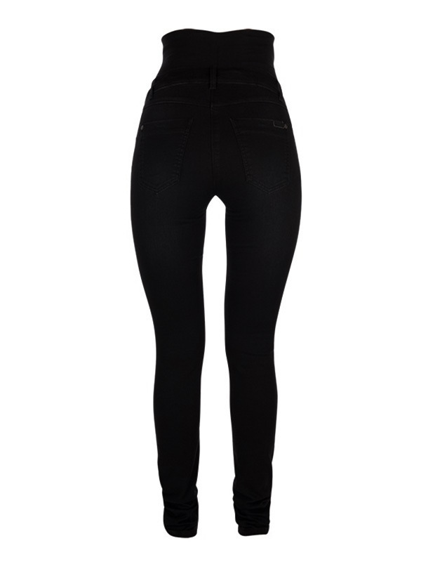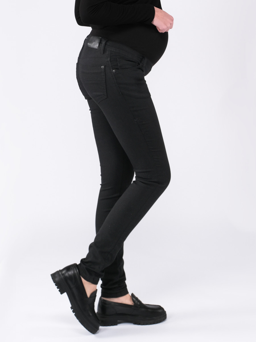 Farkuissa on paljon stretchiä, joten ne mukautuvat eri mallisille vartaloille eivätkä kiristä tai purista. Farkkujen vyötäröllä on vatsan yli vedettävä napakka tuubiosa, vyölenkit sekä vyösauman sisäpuolelle piilotettu kuminauha, jolla voi säätää vyötärön istuvuutta pienemmäksi ja suuremmaksi. Edessä ja takana on taskut.