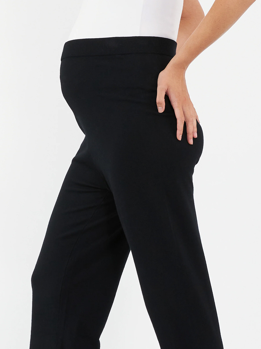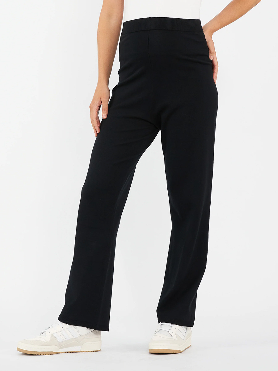 Äitiyshousut Ryan Knit Pant Black nostaa lounge-tyylisi uudelle tasolle! Pehmeästä viskoosi-nailon sekoitteesta tehdyt housut hyväilevät kasvavaa raskausvatsaa. Housuissa on vatsan päälle nouseva, mukava vyötäröosa sekä leveät, kauniisti laskeutuvat lahkeet.