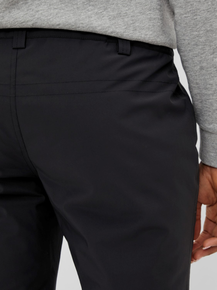 Vyötäisillä on kuminauhat, joiden kireyden voi säätää. Lahkeissa lumilukot. Edessä on vetoketjulliset taskut ja vyötäisillä vyölenkit.