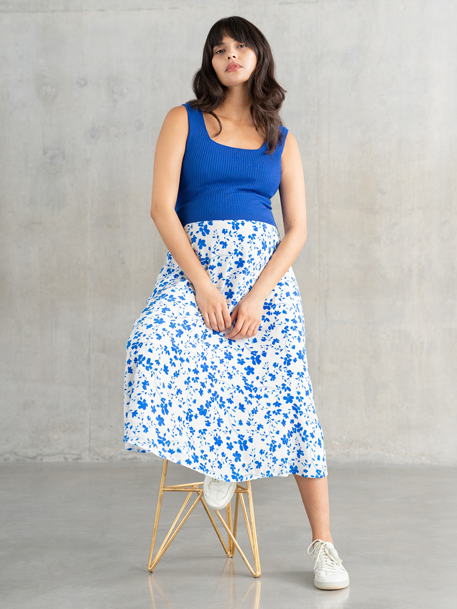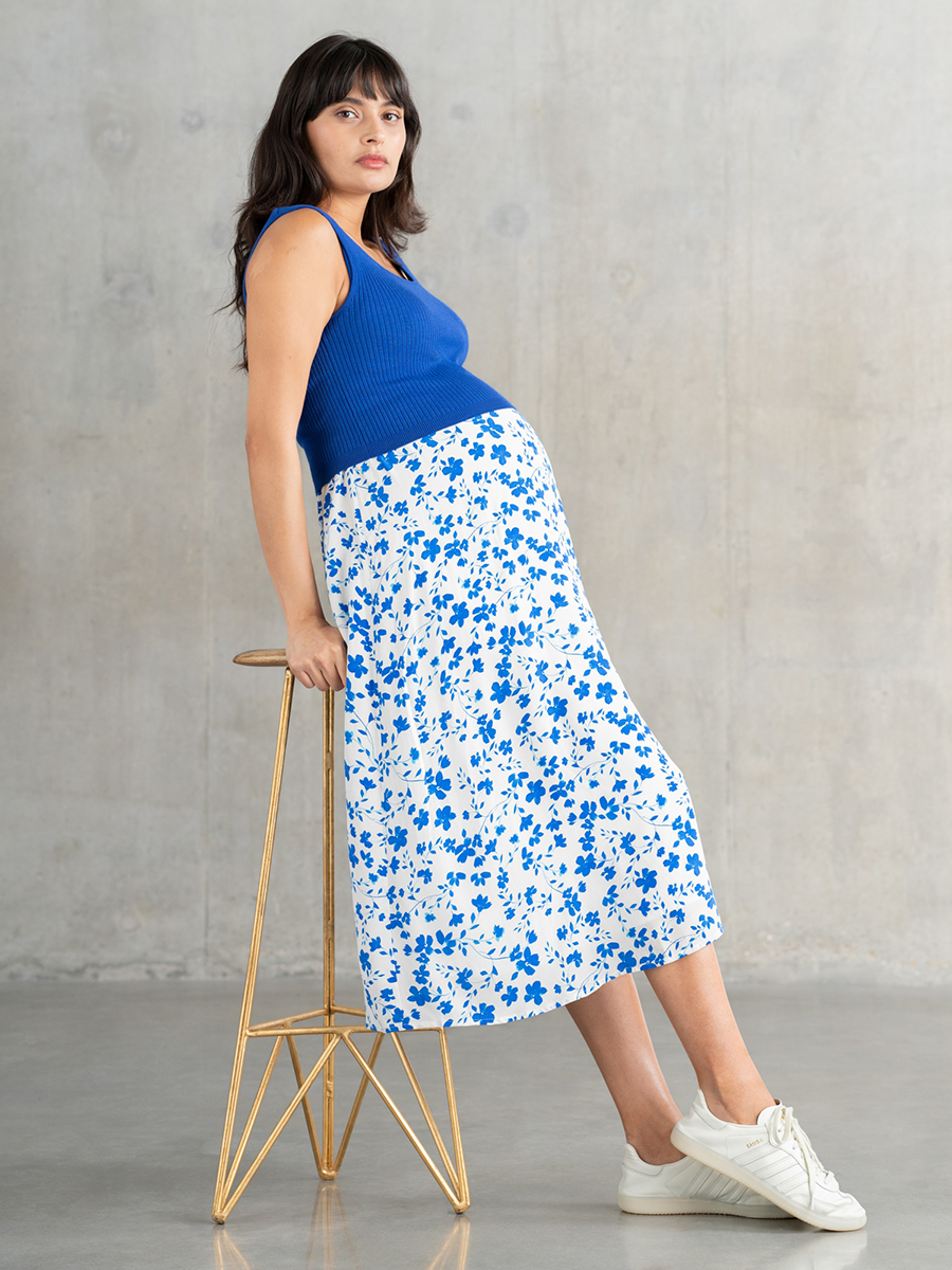 Imetysmekko Maria Knit Top on kaksiosainen mekko, jossa on pehmeä ribbineulottu yläosa sekä kauniisti laskeutuva helma. A-linjainen mekko sopii niin raskausaikaan, imetykseen kuin niiden jälkeen!