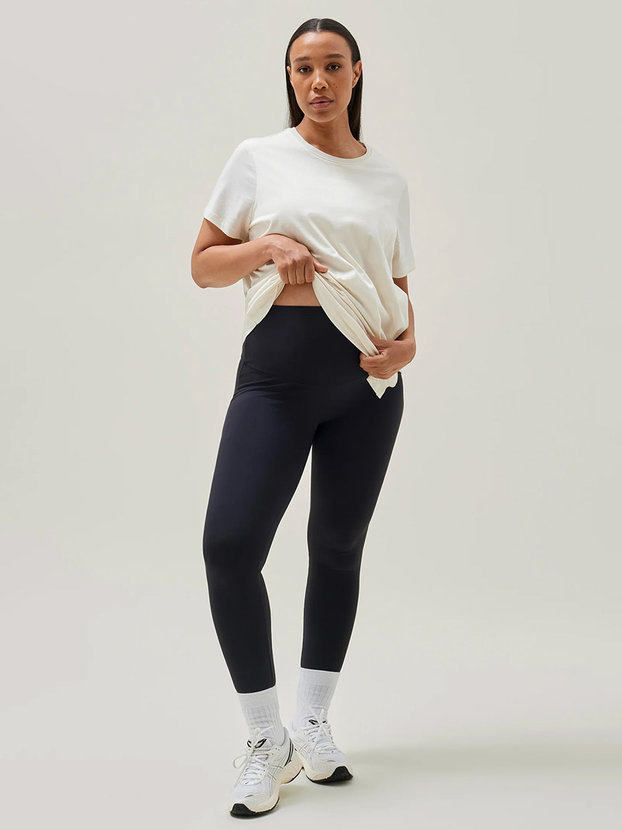 Äitiysleggings Yoga Black ovat äärettömän mukavat, joustavat urheiluleggingsit korkealla vyötäisellä. Vyötäisosa tukee vatsaa juuri oikealla tavalla ja istuu käyttäjälleen niin raskausaikana kuin sen jälkeen.