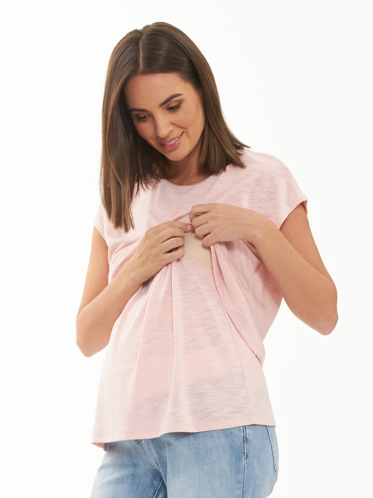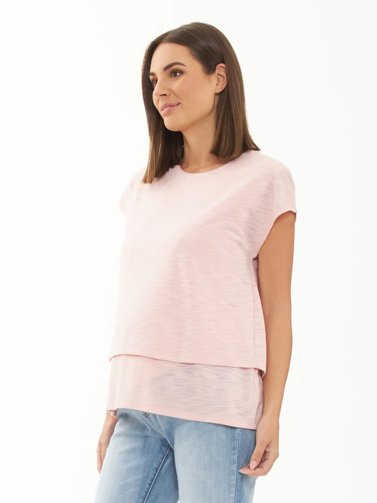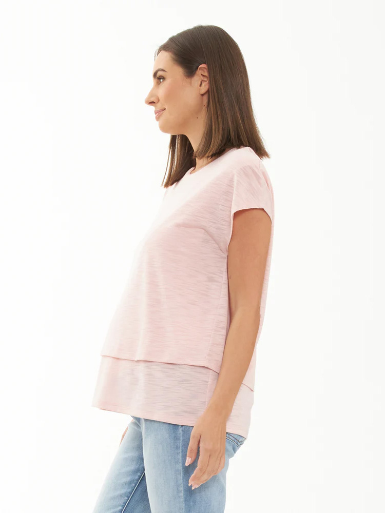Imetys t-paita Jazmin Soft pink on monikäyttöinen luottovaate, se mukautuu kahdella eri tavalla: käytä rennosti pitkänä tai laita sisempi kerros housujen sisään ja saat päälimmäisestä kerroksesta lyhennetyn näköisen version!