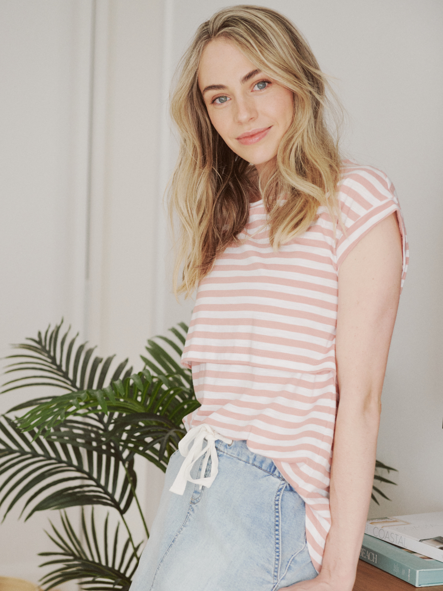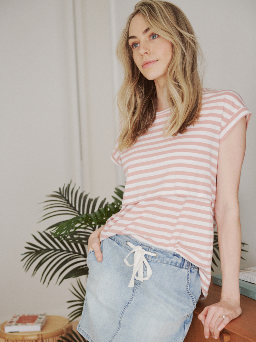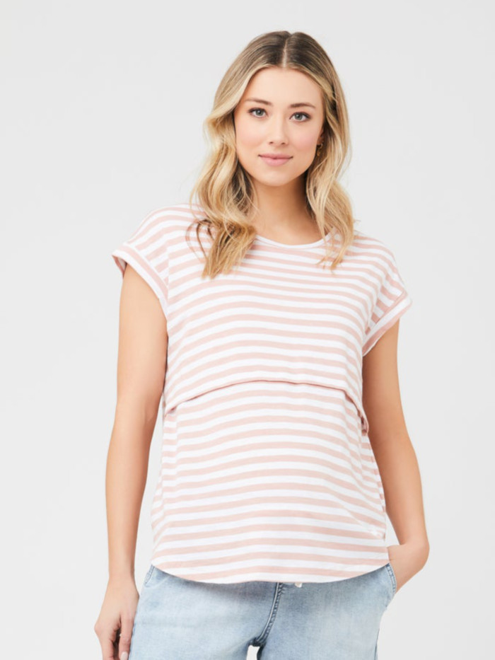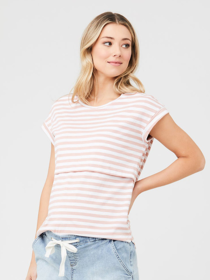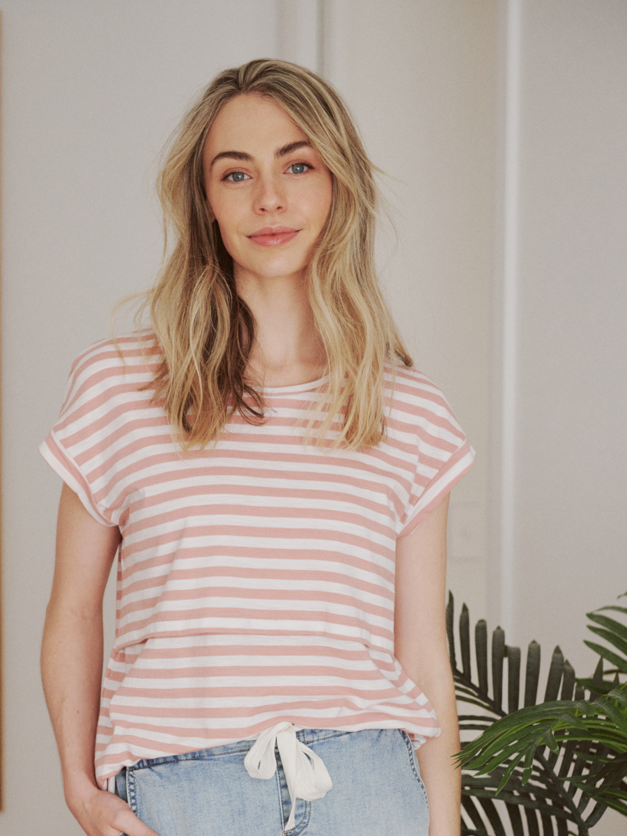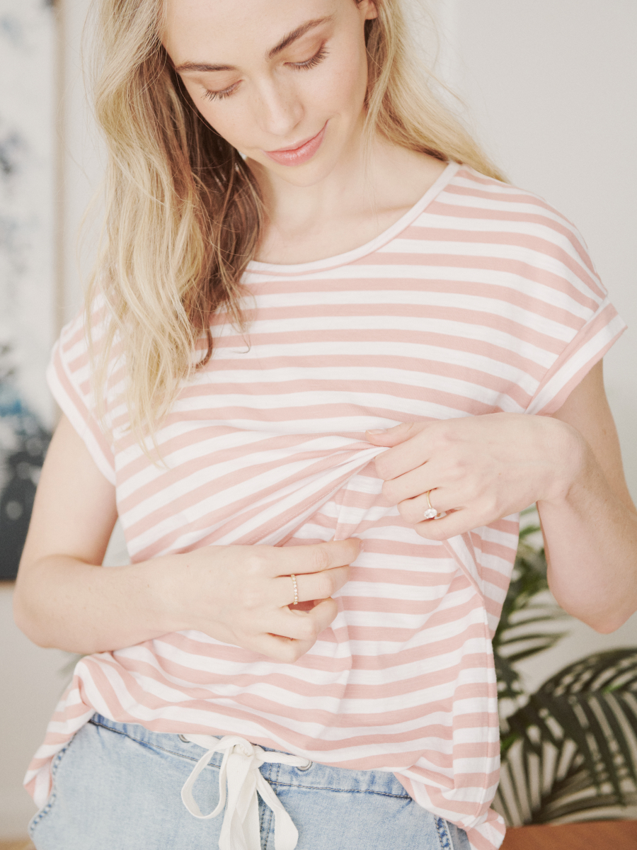 Imetys t-paita Lionel dusty pink / white on rento paita raskaus- ja imetysaikaan. Pehmeä trikooinen kangas antaa tilaa kasvavalle vatsalle. Kaksoiskankaan ansiosta imetät helposti ja huomaamattomasti.