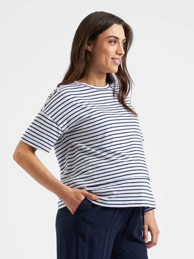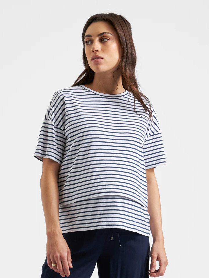 Imetys t-paita raidallinen Claudette White / ink on rento oversized t-paita laatikkomaisella leikkauksella. Raidallinen kuosi henkii raikasta merellisyttä ja on helppo yhdistä minkä vain alaosan kanssa!