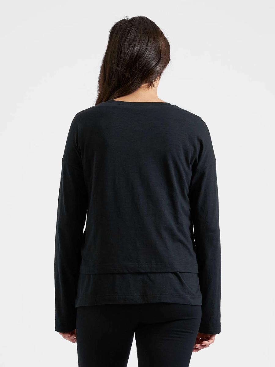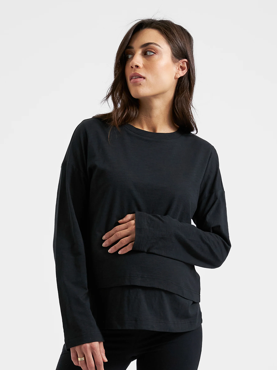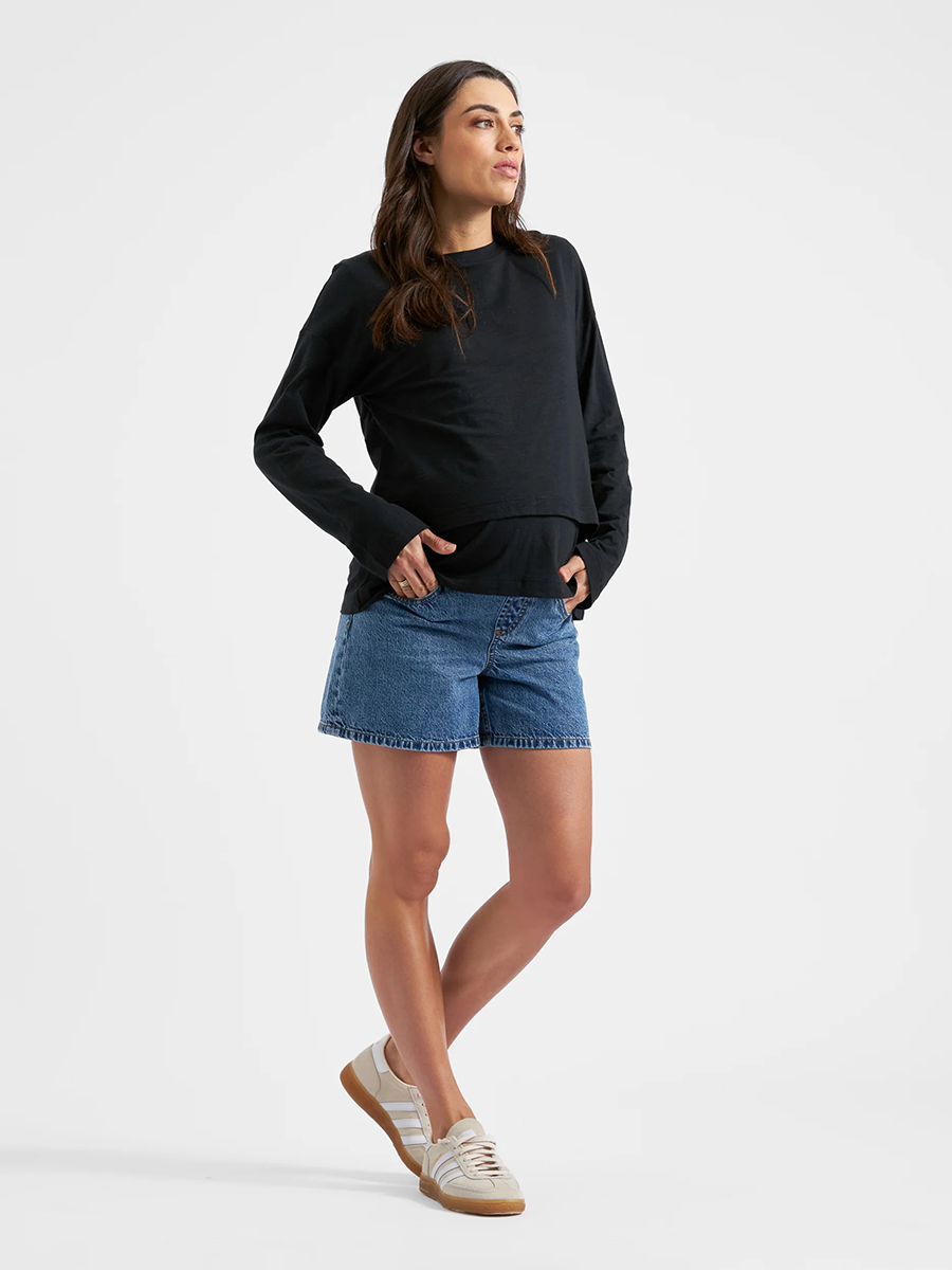 Imetyspaita pitkähihainen Claud Black on ihana jokapäivän vaate raskaus- ja imetysajallesi. Pehmeästä ja joustavasta trikookudoksesta valmistetussa paidassa on A-mallinen, rento leikkaus, joka istuu niin vatsan kasvaessa kuin vauvan synnyttyä imetyshetkissä.