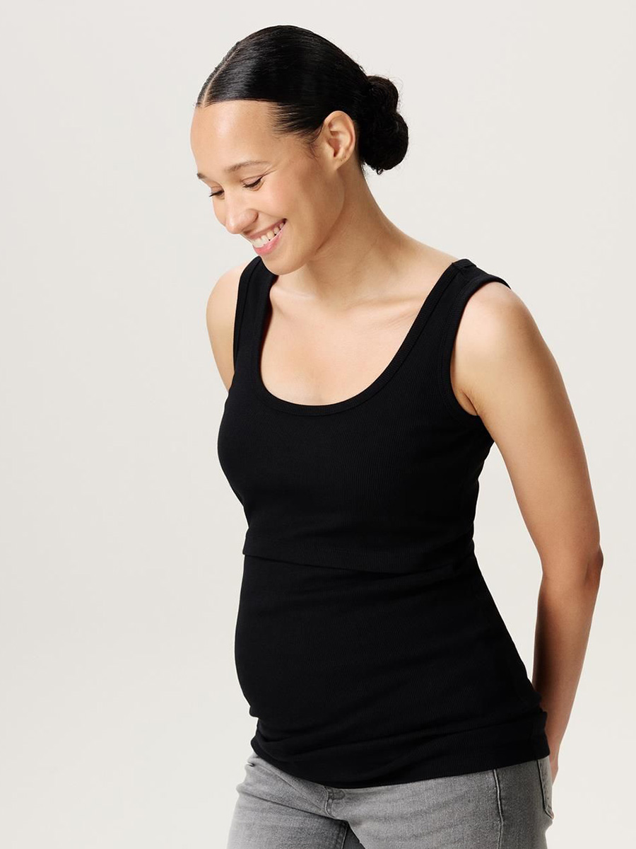 Imetystoppi Evita Black sopii sekä raskausaikaan sekä imetykseen. Ribbikankainen toppi joustaa ihanasti ja istuu kasvavan vatsan päälle. Vauvan synnyttyä imetys onnistuu vaivatta imetyslaskoksen kautta, joka on helppo nostaa ylös yhdellä kädellä kun pitelet vauvaa toisella kädellä.