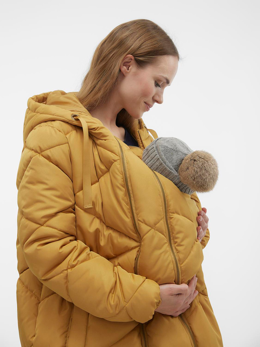 Kun suunnittelet käyttäväsi takkia vauvan kantamiseen, huomioi, että takin alle tulee mahtua sekä vauva, kantoväline, että mahdollisesti pari kuppikokoa kasvaneet rintasi. Käsiesi liikkuvuus hartioista on erityisen tärkeää, jotta pääset kunnolla koukistamaan kätesi, hoitamaan vauvaa ja koskettamaan hänen kasvojaan, jotka ovat kantaessa lähellä omiasi.