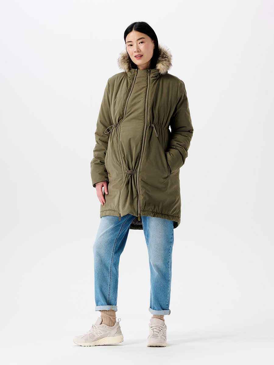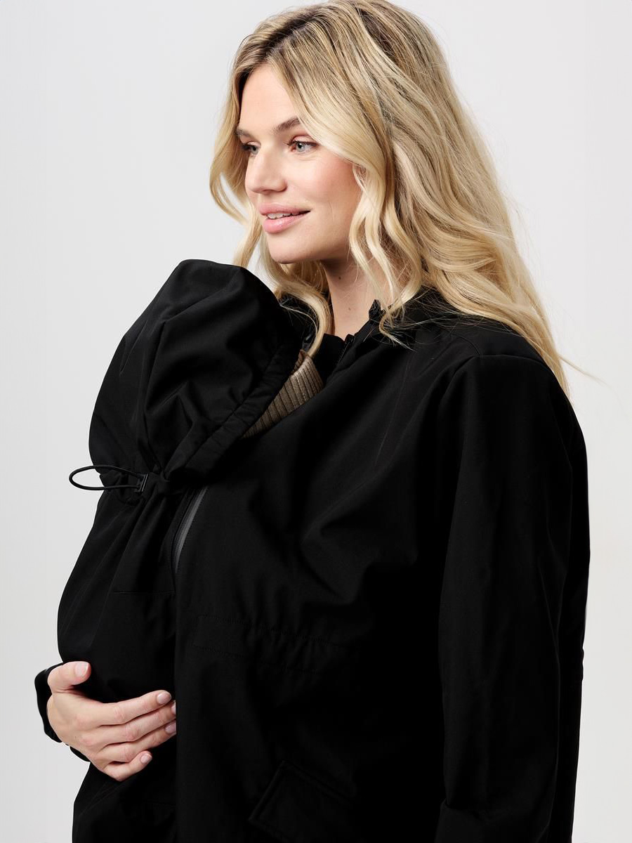 Noppies äitiys ja kantotakki Rey Oversized-malli sopii niin raskausajalle kuin sen jälkeen. Takin mukana tulee erillinen vetoketjuilla eteen kiinnitettävä paneeli, joka mahdollistaa lisätilan kantovälineessä olevalle vauvalle.