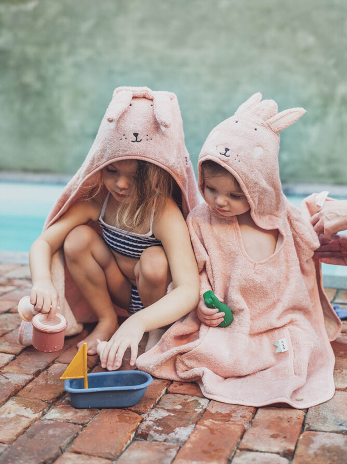 Huppupyyhe Mrs. Rabbit on lapsille sopivan kokoinen pehmeä froteepyyhe, jossa on käytevä huppu! Hupun suloinen eläinhahmo ilahduttaa lapsia ja tekee niin kylpyhetkistä kuin rantaleikeistä hauskempia. Huppu pysyy lapsen päässä ja auttaa pyyhettä pysymään paikoillaan sekä pitämään lapsen lämpimänä.