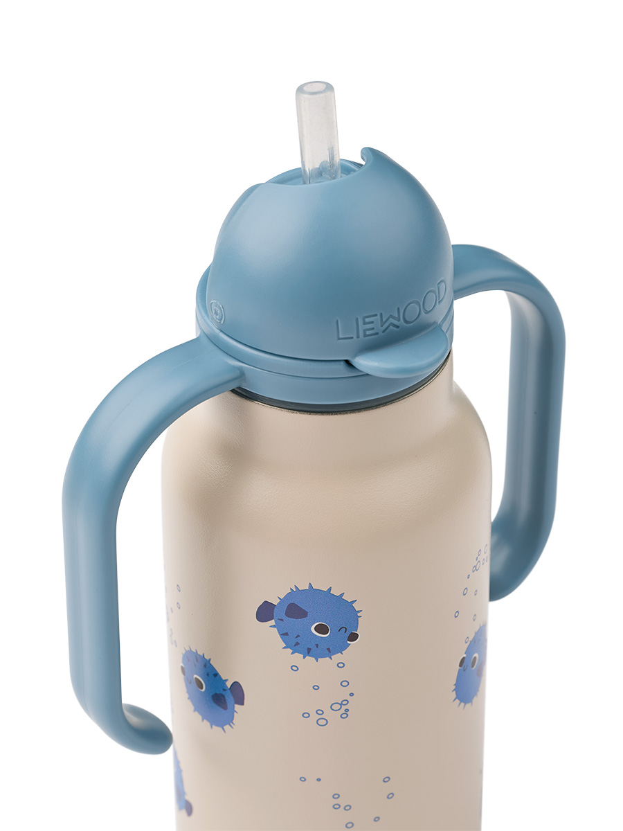 Juomapullo Kimmie 250ml pehmeällä silikonipillillä ja kahvoilla, sopii ihanteellisesti vauvoille ja taaperoille.