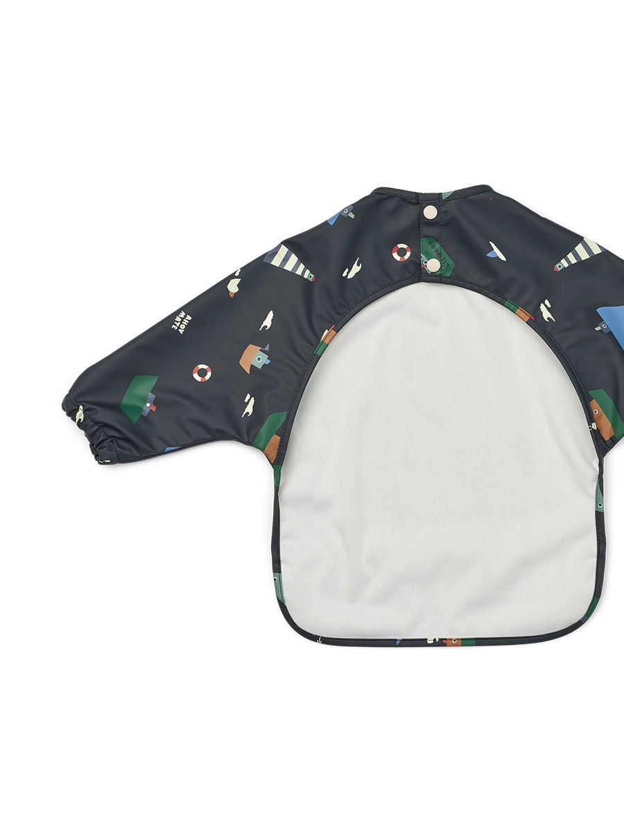 Liewood ruokalappuessu Merle on täydellinen ruokalappuessu suojaamaan pikkuisen vaatteet aterialla tai esimerkiksi maalatessa. Ruokalappuessu on vedenpitävä ja siinä on vaatteita suojaavat hihat sekä vedenpitävä, leveä tasku putoavalle ruoalle.