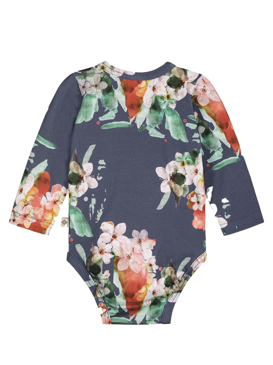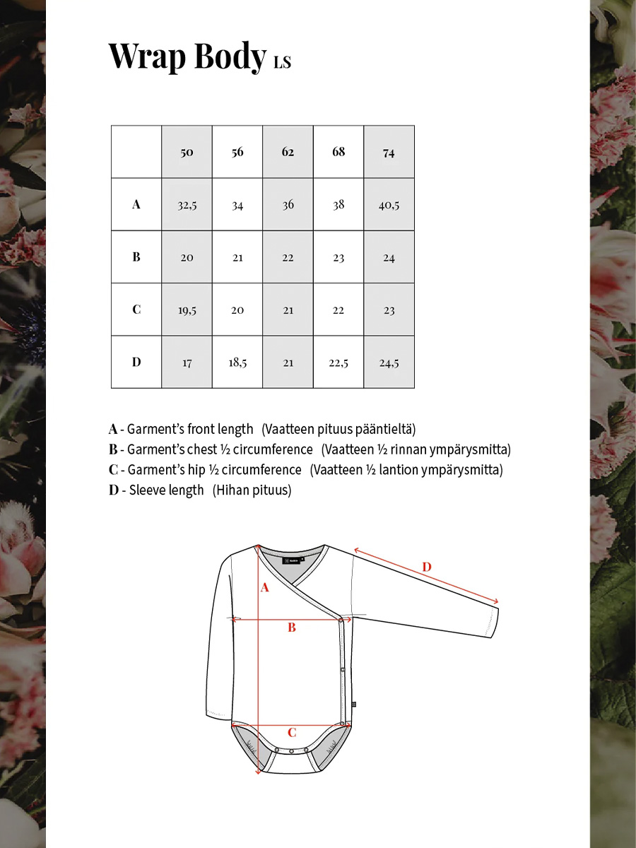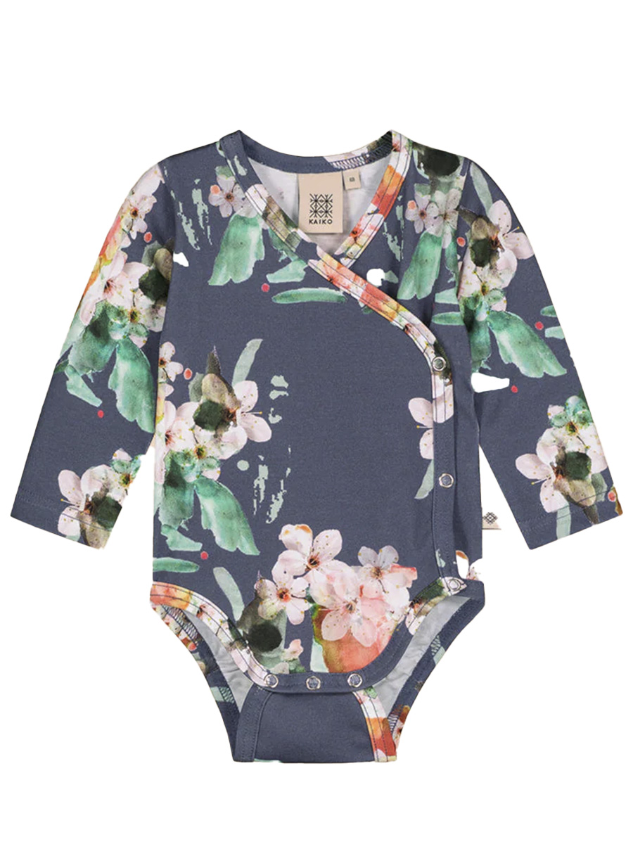 Vauvan Kietaisubody Blue Blossom on Kaikon tuttu wrap body valloittavan suloisella Kaikon klassikko kuosilla Blue Blossom. Bodyssa on pitkät hihat, ja materiaali on ihanan pehmeää luomupuuvillaa.