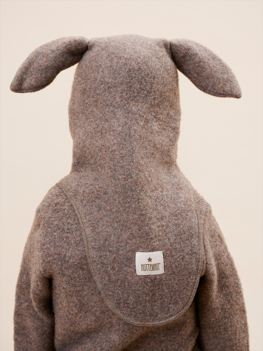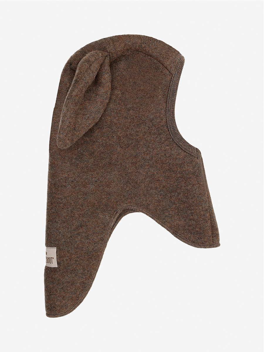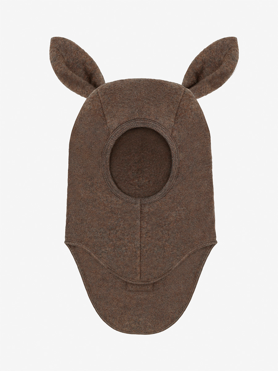 Kypärämyssy Balaclava bunny ears wool fleece Brown on muhkean pehmeä ja lämmin kypärälakki untuvaisen pehmeäksi harjatusta merinovillafleecestä. Pienet pupunkorvat tuovat myssyyn leikkisän ilmeen. Kasvojen ympärillä oleva kuminauha ja pidennetty takaosa varmistavat, että kypärälakki istuu hyvin ja suojaa tuulelta ja kylmältä.
