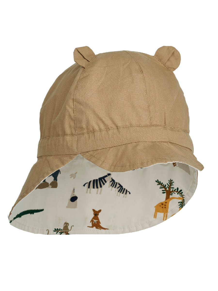 Vauvan käännettävä hellehattu Gorm on kesäin suloisin päähine, joka valmistettu pehmeästä ja vilpoisesta luomupuuvillasta. Päähineen voi kääntää nurinperin, jolloin se tuo värivaihtelua asukokonaisuuksiin.
